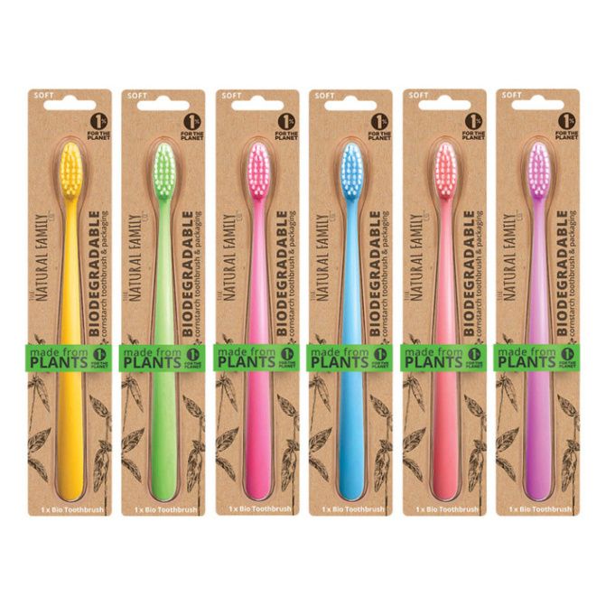Zubní kartáček z veselé, neonové kolekce s měkkými nylonovými štětinami zajistí jemné, ale důkladné vyčištění ústní dutiny a zároveň je maximálně šetrný vůči přírodě. Rukojeť je vyrobena z kukuřičného škrobu, který neobsahuje GMO. Rukojeť i obal produktu jsou biologicky rozložitelné, kompostovatelné.