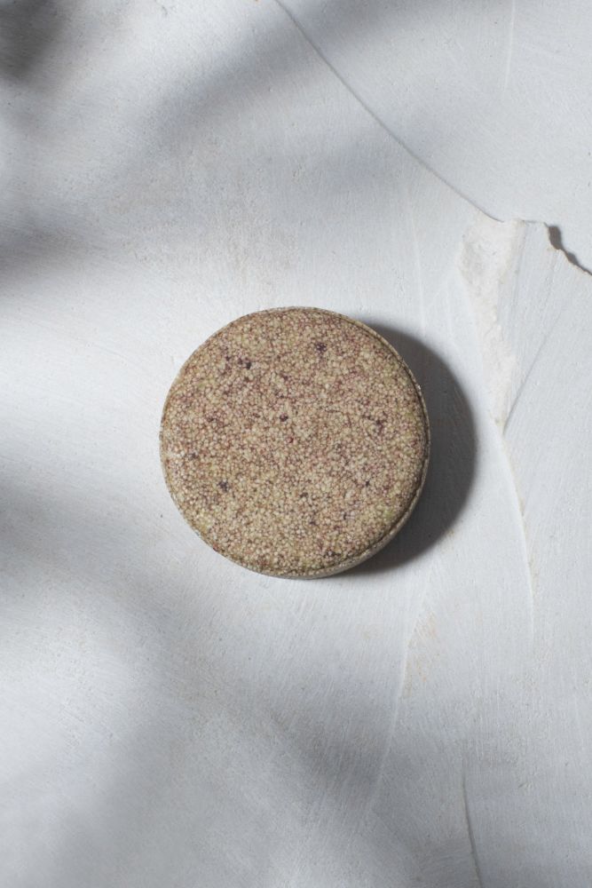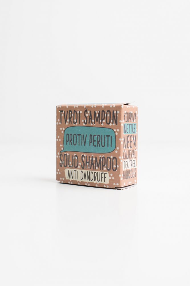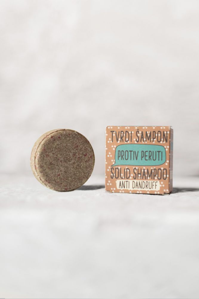 Tuhý šampon účinně bojuje proti lupům a chrání a ošetřuje vlasovou pokožku. Obsahuje veganské, biologicky rozložitelné přísady, obal je vytvořen z recyklované lepenky. Díky dostatečné péči již během mytí není nutné následné použití kondicionéru.