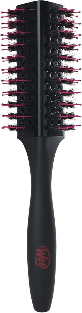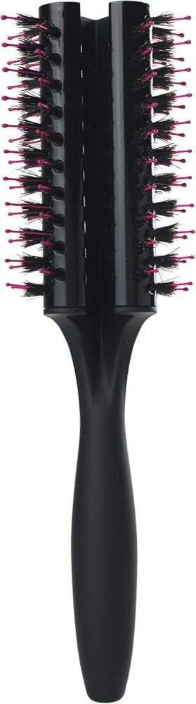 Kulatý kartáč na vlasy s trojúhelníkovým tvarem pro vytváření objemu a tvarování účesu při foukání. Tepelně odolné štětiny HeatFlex se ohýbají pod tlakem a chrání vlasy před lámáním. Keramický válec s technologií ThermaVent urychluje sušení rovnoměrným rozložením tepla a vyzařuje záporné ionty pro hladký povrch bez krepatění. Zaoblené hrany umožňují nadzvednout vlasy u kořínků, ploché strany je uhlazují. Vhodný pro všechny typy vlasů.